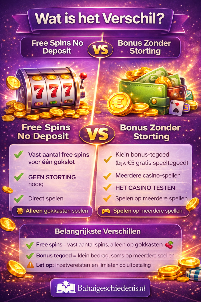 Wat is het Verschil Tussen Free Spins No Deposit & Bonus Zonder Storting?
